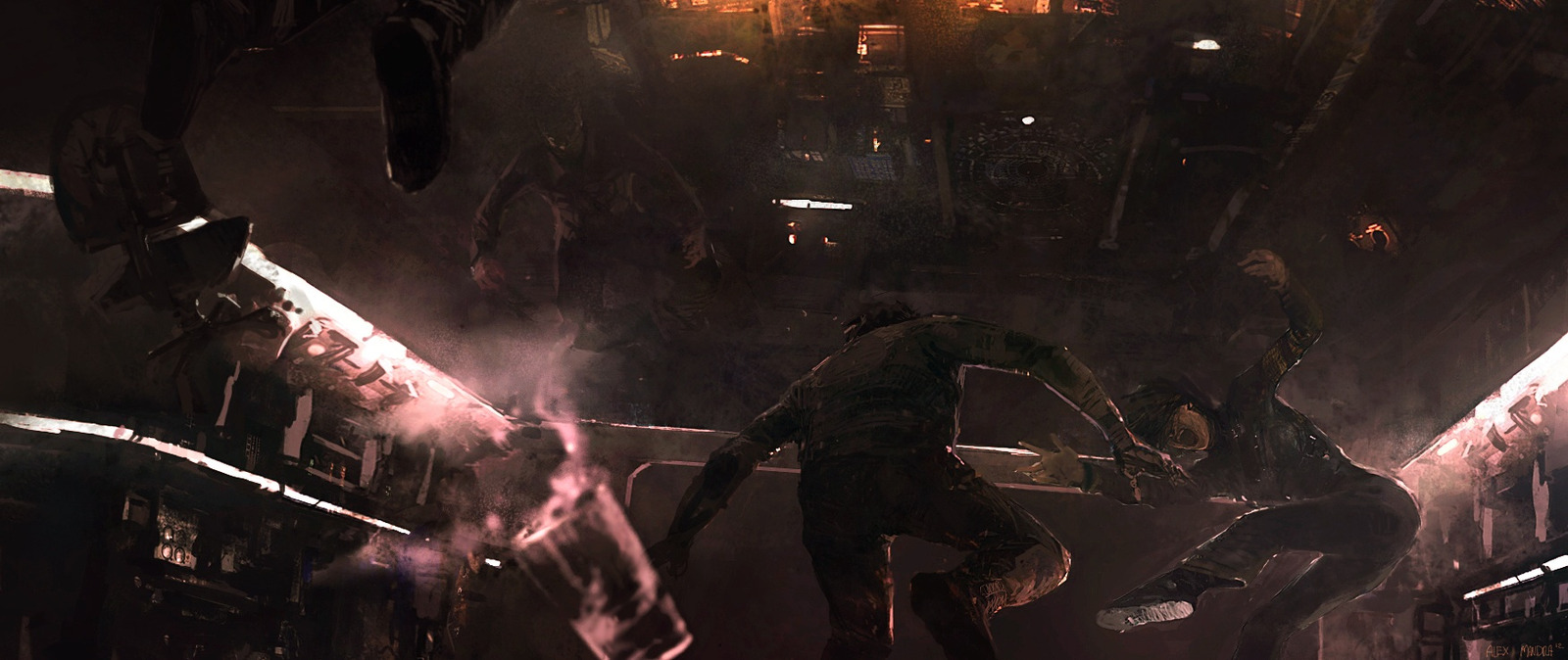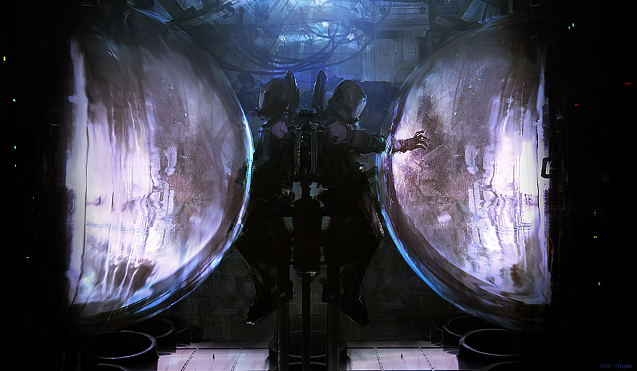 We can’t get enough of the dark, atmospheric sci-fi themed paintings and illustrations of Alexander Mandradjiev. Movie and video game concept artist Alexander Mandradjiev expertly composes his images and creations, putting just enough information and detail into each painting to bring the subject matter exploding (or creeping mysteriously) to life. His work has a real cinematic feel with each painting looking like a frame from a movie – a great sci-fi movie that only exists in Alex Mandradjiev’s imagination!